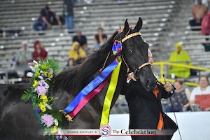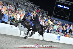 SHELBYVILLE, Tenn.— The first Saturday night of The Celebration is the preliminary to the big stake night where the Grand Champion Tennessee Walking Horse of the world is crowned. The first Saturday night is the main qualifier to see who will show back for that special honor. In addition to this, the Lead Line World Grand Championship and the Yearling World Grand Championship usher in the first spotlight rides of The Celebration. Competition got underway at precisely 7PM with Mark Farrar announcing the flag bearers, White Diamond Dollar and Vicki Self. After the colors were posted in the north turn, Jimmy West of the Edgemont Baptist Church said the invocation. The Cavaliers of Shelbyville sang the national anthem.